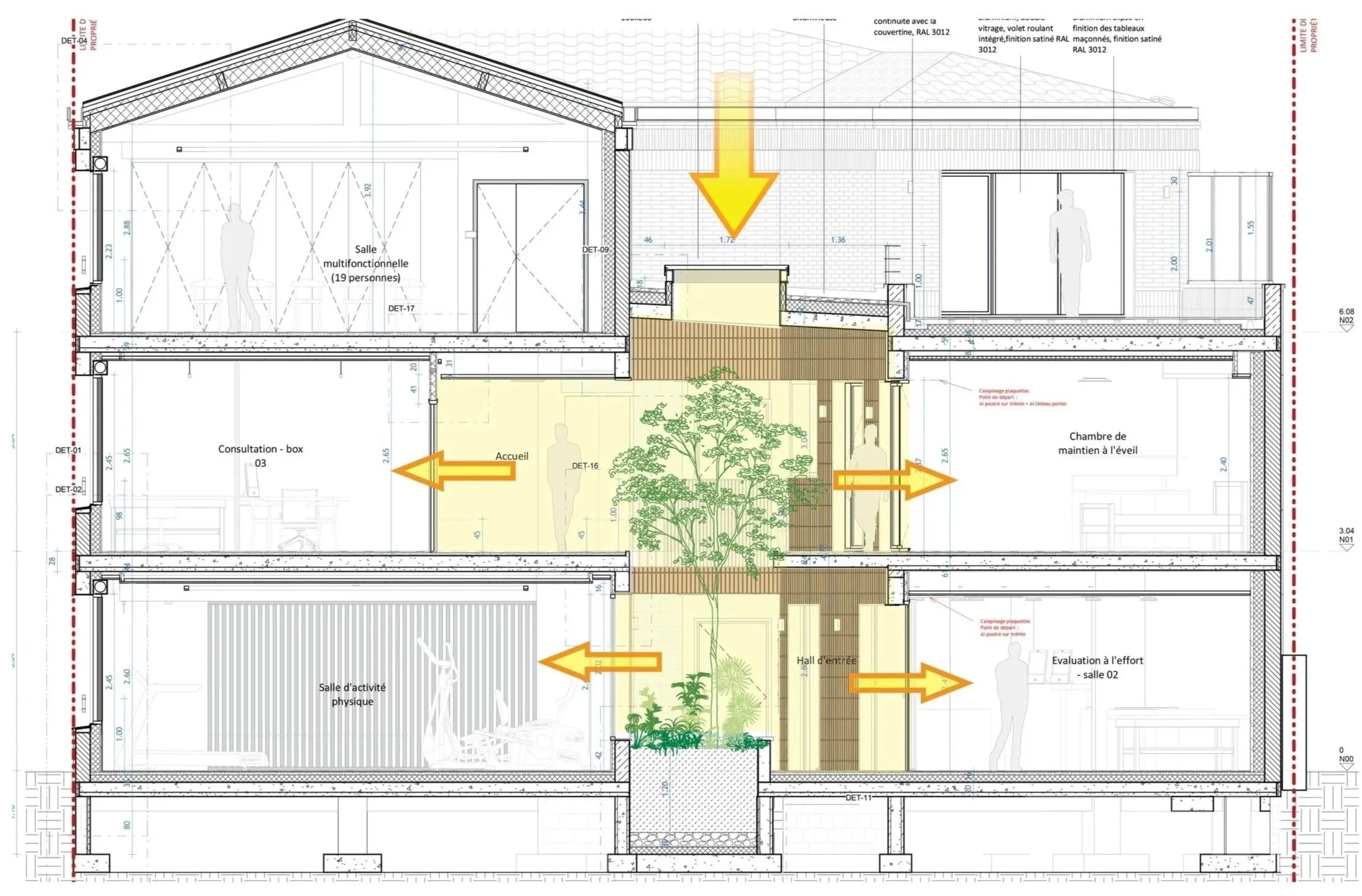Programme : création d’un centre de soins pluridisciplinaire comprenant une salle d'activité physique, boxes de consultation et locaux spécialisés divers.